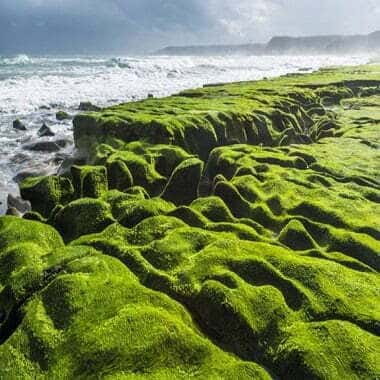 ชายหาดหินสีเขียวที่ให้ความรู้สึกสวยงามแปลกตาแห่งนี้ ตั้งอยู่ในเขต Shimen ในกรุงไทเป บริเวณพื้นที่ที่เป็นส่วนเหนือสุดของไต้หวัน โดยลานหินซึ่งอยู่ติดกับผืนน้ำทะเลแห่งนี้สันนิษฐานว่าเกิดขึ้นจากการระเบิดของภูเขาไฟ Datun เมื่อหลายร้อยปีก่อน และเกิดเป็นลาวาไหลลงมายังทะเล ต่อมาลาวาเหล่านั้นแข็งตัวจนกลายเป็นลานหินขนาดใหญ่ในรูปร่างแปลกตา เนื่องจากการกัดเซาะของคลื่นและน้ำทะเล ซึ่งจะเกิดความสเปเชียลยิ่งขึ้นไปอีกในช่วงเดือนเมษายนและพฤษภาคมของทุกปี เพราะจะเป็นช่วงที่สภาพแวดล้อมลงตัวเหมาะเจาะพอดีกับการที่สาหร่ายสีเขียวสดจะสามารถเจริญเติบโตงอกงามขึ้นมาได้ และด้วยเหตุผลทั้งหมดที่บอกมา จึงทำให้เราได้เห็นภาพทิวทัศน์ที่แปลกตาและน่าสนใจแบบนี้ยังไงล่ะคุณ